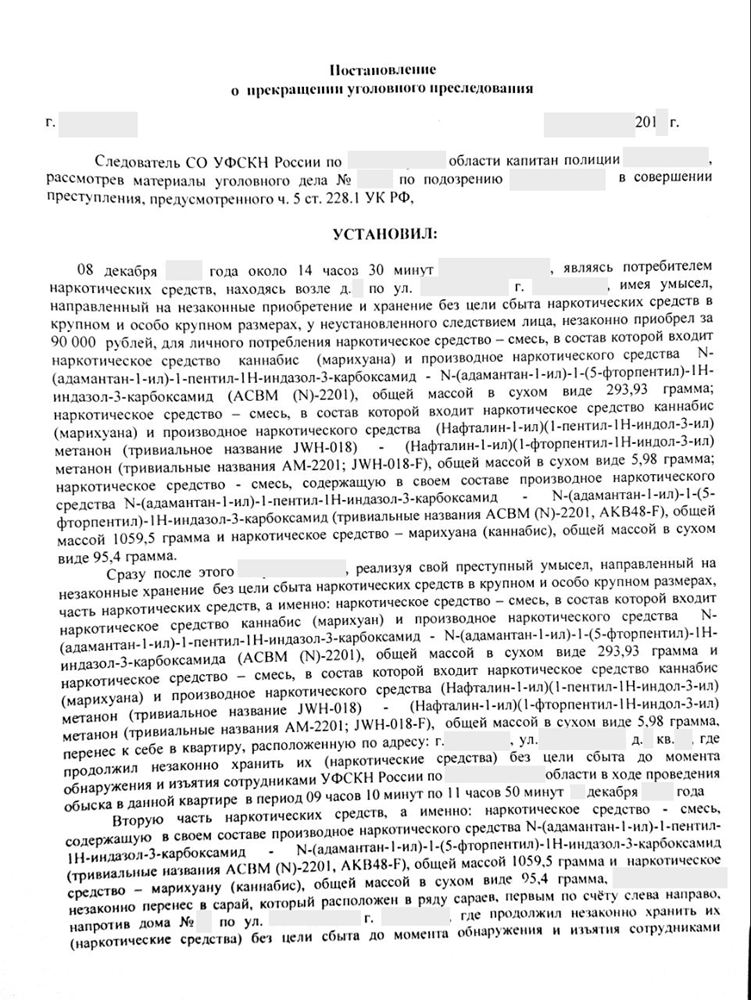 Прекращение уголовного дела по 228.1 Ч.5